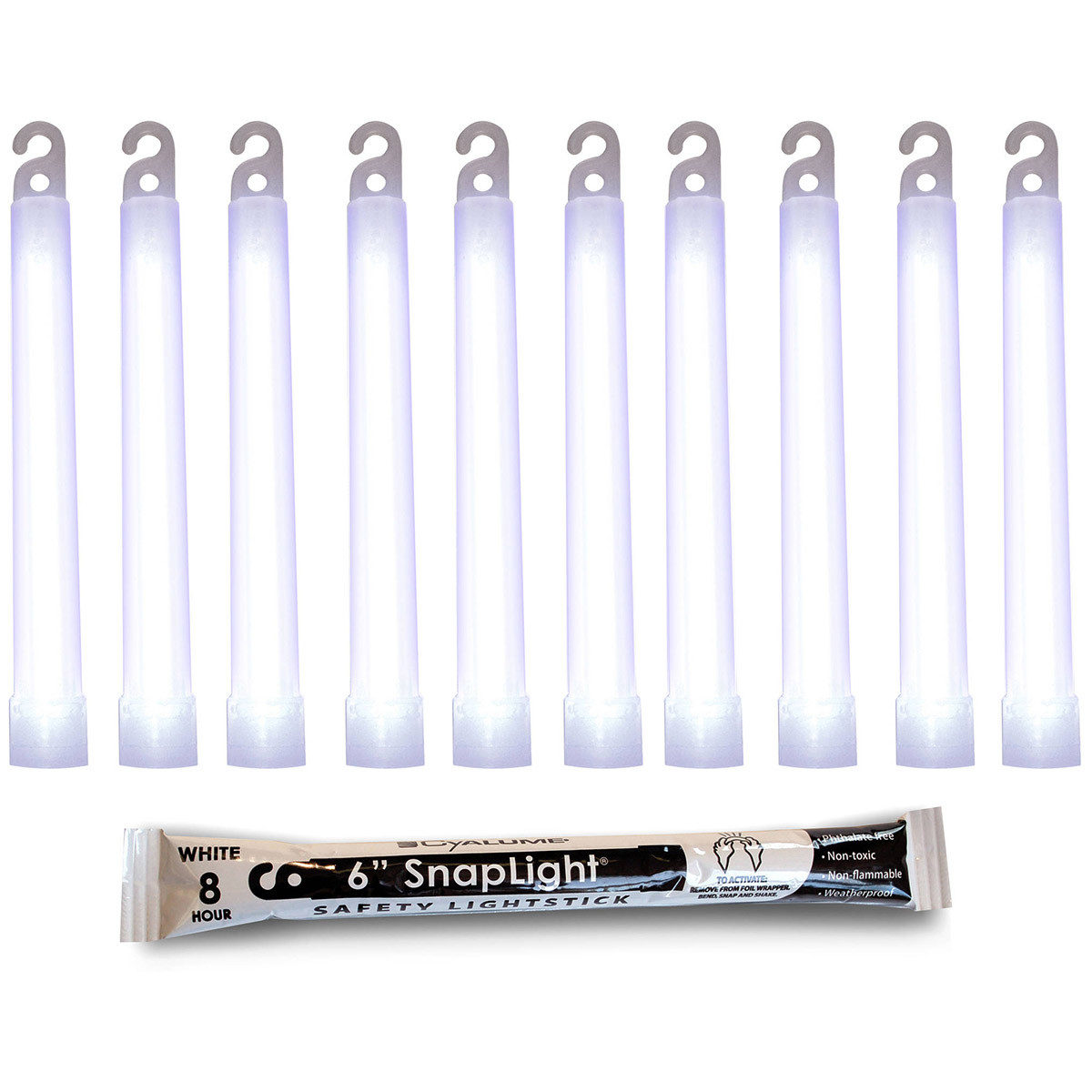The SnapLight lightstick has a simple open hook and an eyelet