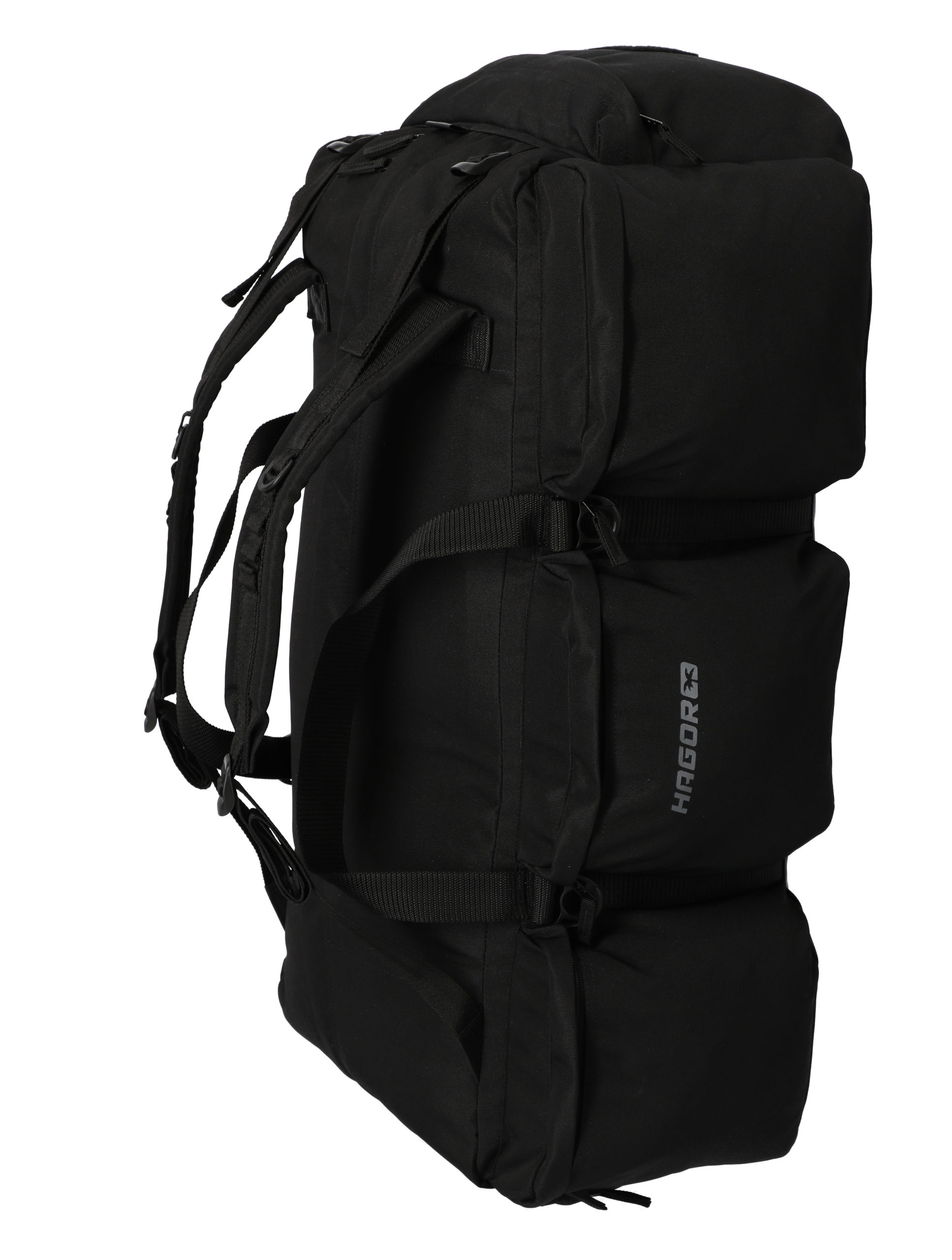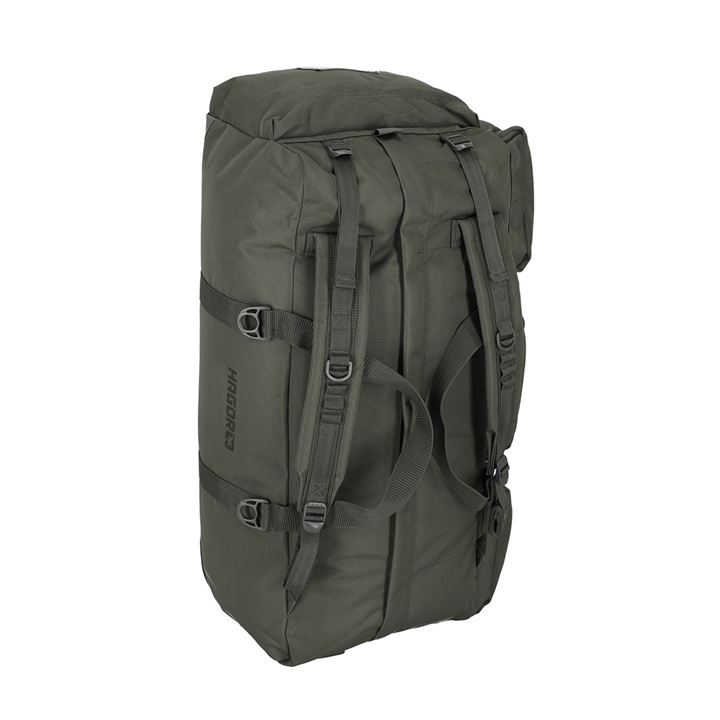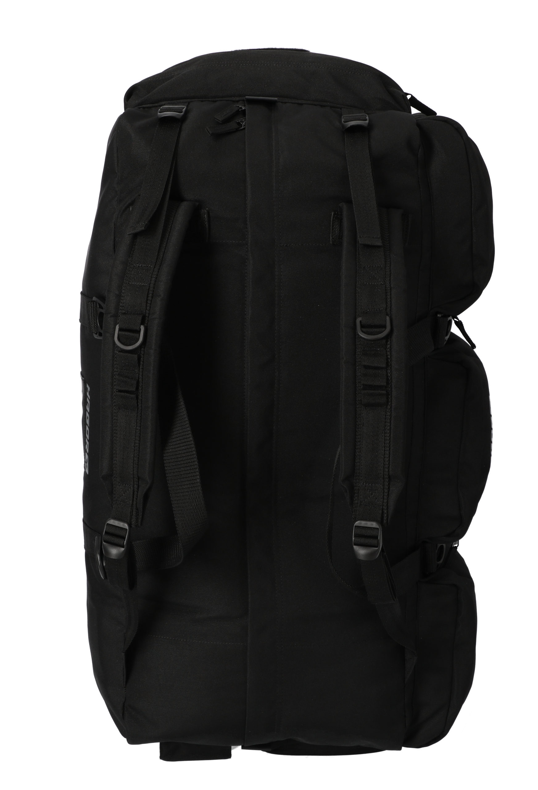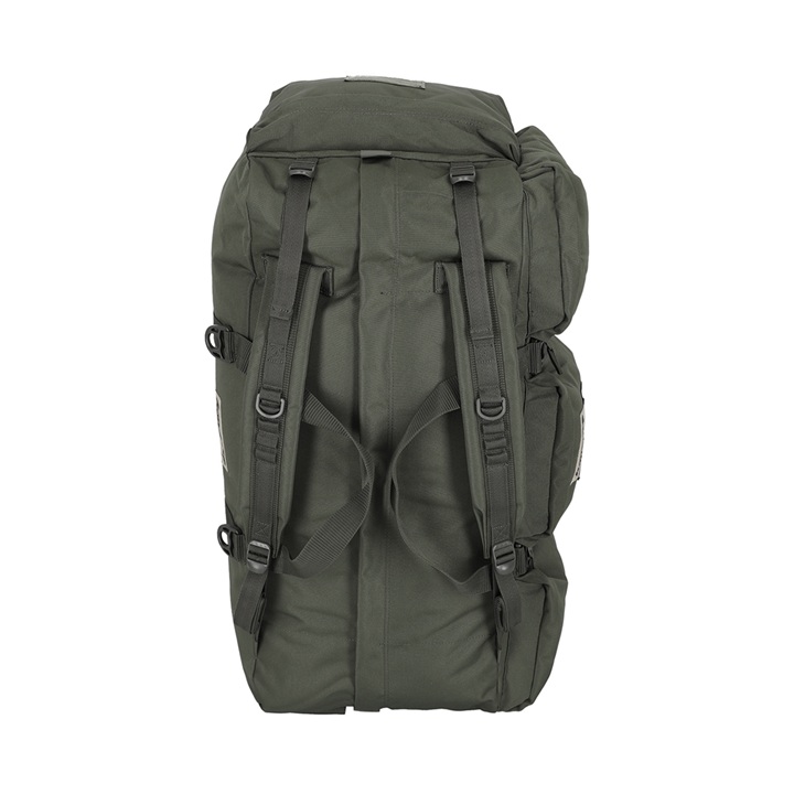 • Four metal buckles on the side with no compartments for sleeping bags or mattresses to be strapped to the bag.