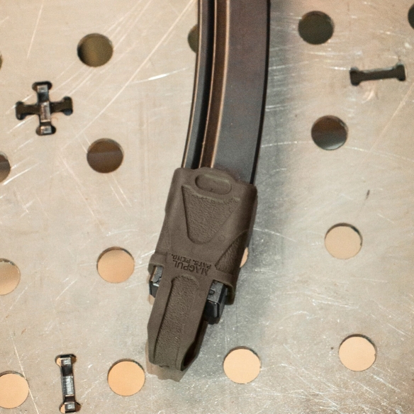 When installed on the base of sheet metal 9mm submachine-gun magazines, the original Magpul provides improved speed and controllability during high stress, tactical magazine changes. Durable synthetic rubber loop with recessed rough gripping surface. Quick and easy installation and removal.